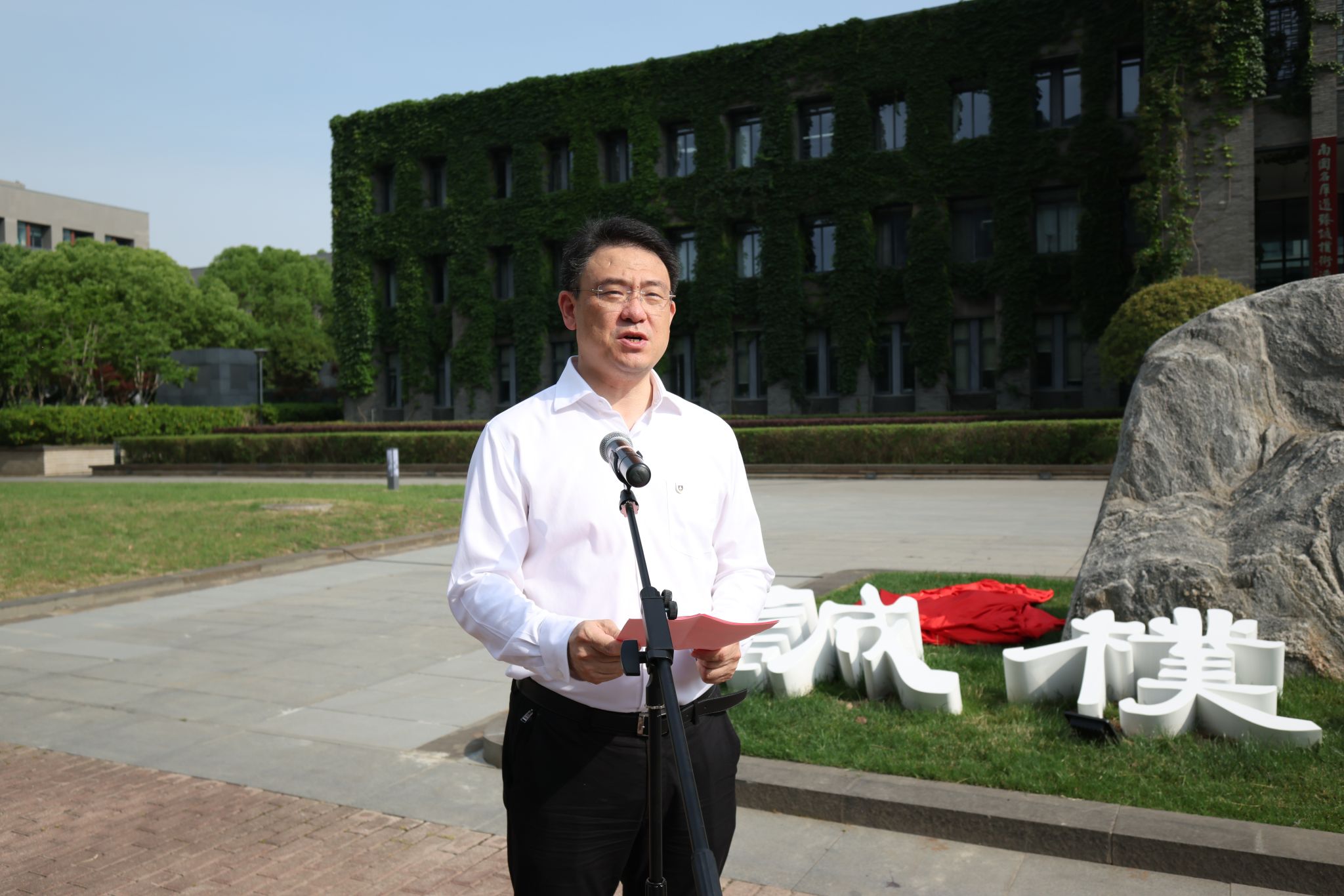 On May 20th, the motto stone donated by Nanjing University Shanghai Alumni Association was officially unveiled. During the ceremony, Tan Zhemin, President of Nanjing University and Academician of the Chinese Academy of Sciences presented a certificate of appreciation to Zhu Zhendong, President of the Shanghai Alumni Association.