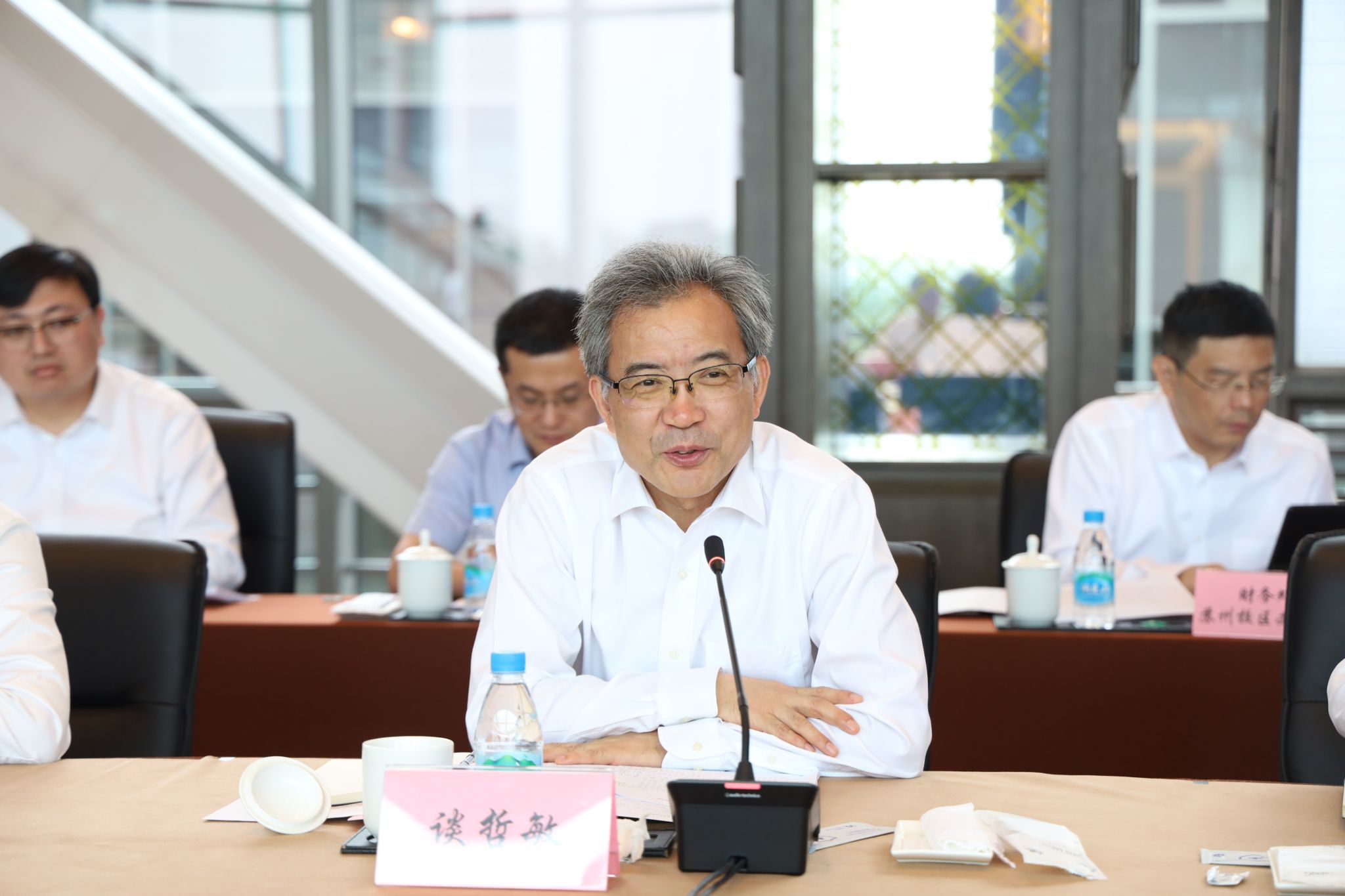 Also present in the meeting are Lu Yanqing, Vice President of NJU, the heads of various university departments, and representatives from Suzhou municipal government and the Hi-Tech Development Zone (Huqiu District).