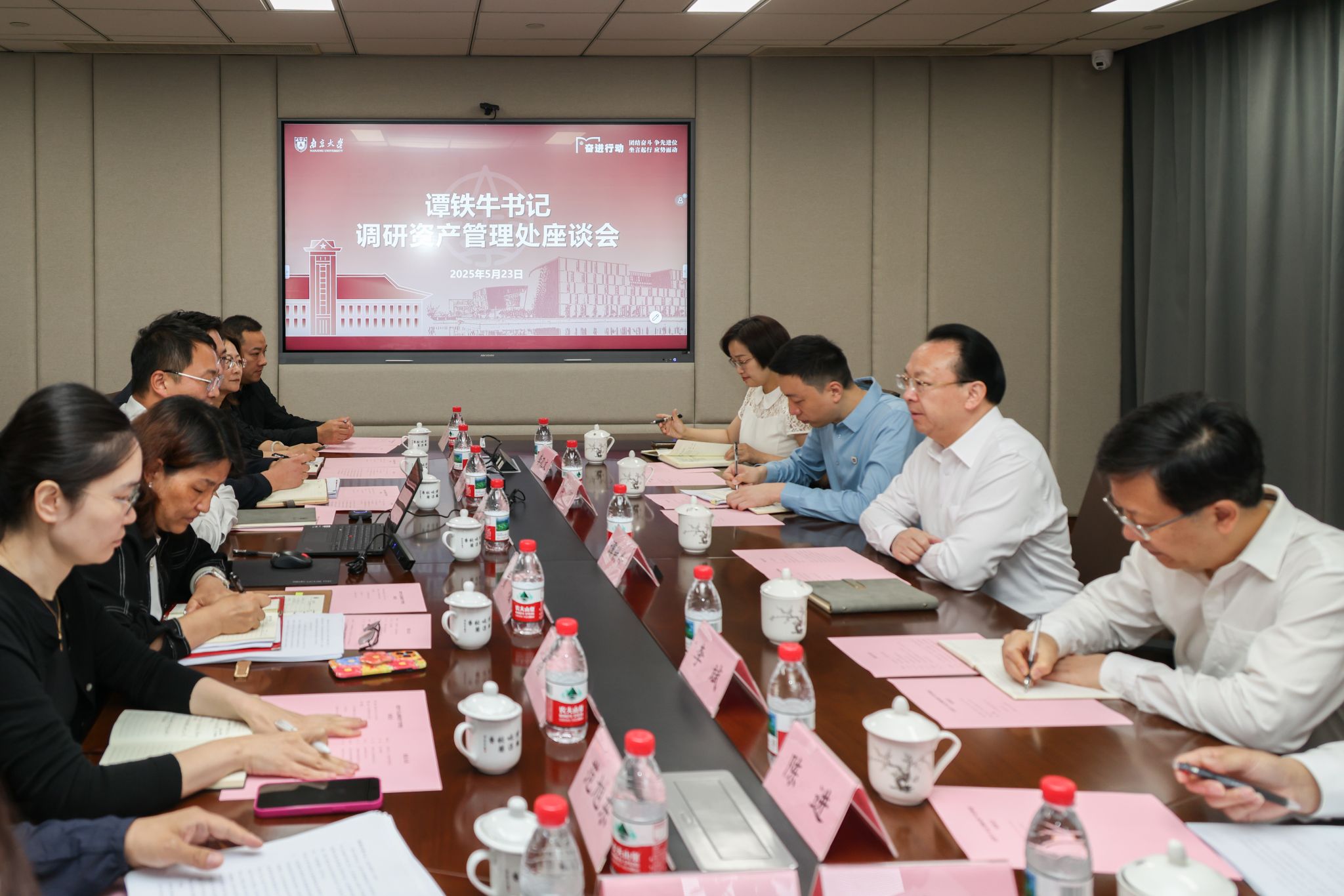 谭铁牛听取了资产管理处工作汇报,对部门工作成效予以充分肯定。“资产管理工作非常重要!”他代表学校党委向大家表示感谢和敬意,并指出,资产管理处在部门领导带领下改革攻坚克难,开创了新局面,展现了新气象,让学校看到了新希望。