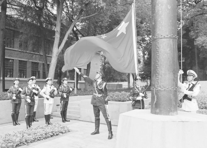 中华不可侮!这根旗杆记录了凯发师生的不屈挺拔