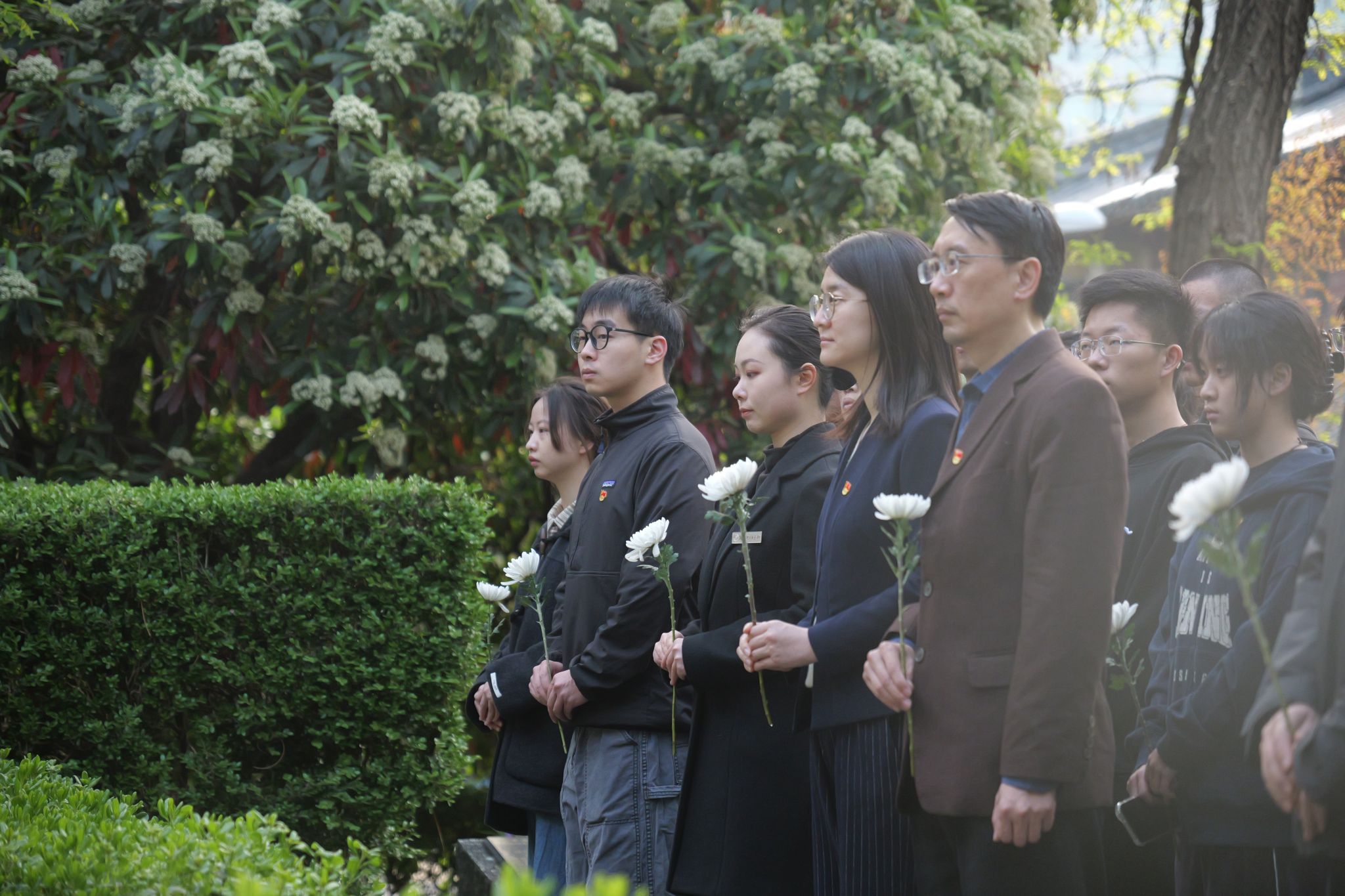 在抗日战争中,无数革命烈士抛头颅,洒热血,长眠于脚下的土地,将生命献给了热爱的祖国与人民。在纪念中国人民抗日战争暨世界反法西斯战争胜利80周年之际,参加升旗仪式的全体人员对抗战先烈致以默哀,表达深深的悼念与追思。