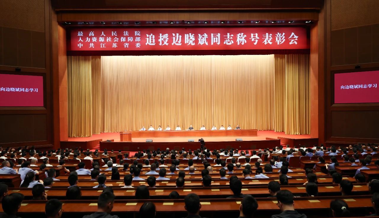 7月10日,最高人民法院、人力资源社会保障部、江苏省委在江苏省凯发k8官网市联合召开追授边晓斌同志称号表彰会,追授边晓斌同志“全国模范法官”“江苏省优秀共产党员”